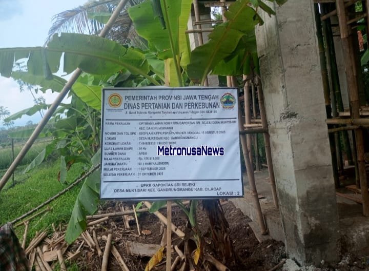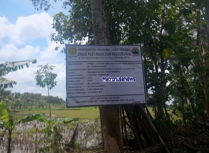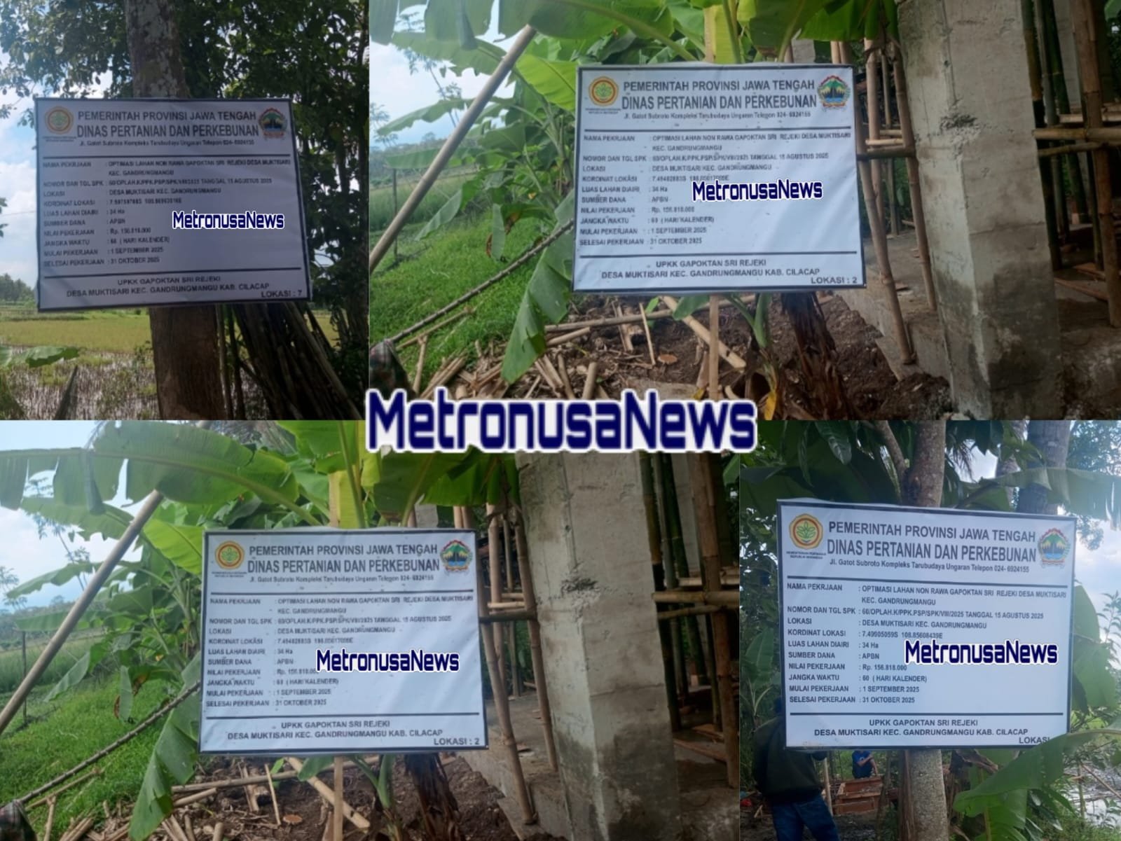 Metronusa News, Cilacap | Pekerjaan Proyek Pertanian “Optimasi Lahan Non Rawa yang kerjakan oleh Gapoktan Sri Rejeki” Desa Muktisari, Kecamatan Gandrungmangu, Kabupaten Cilacap menjadi sorotan masyarakat dan pemerintah Desa lainnya, karena satu Gapoktan Sri Rejeki Desa Muktisari ini mendapatkan sebelas paket pekerjaan proyek Pertanian, sementara di desa lain justru ada yang tidak mendapatkan bantuan proyek Pertanian tersebut.