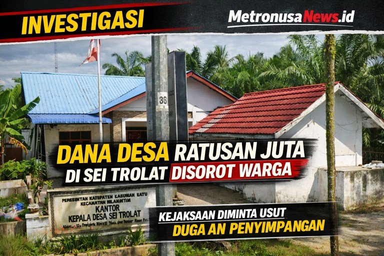 MetronusaNews.id | Labuhan Batu – Dugaan penyimpangan penggunaan Dana Desa Tahun Anggaran (TA) 2024 di Desa Sei Trolat, Kecamatan Bilah Hilir, Kabupaten Labuhanbatu, Sumatera Utara, mulai menjadi perhatian serius masyarakat.