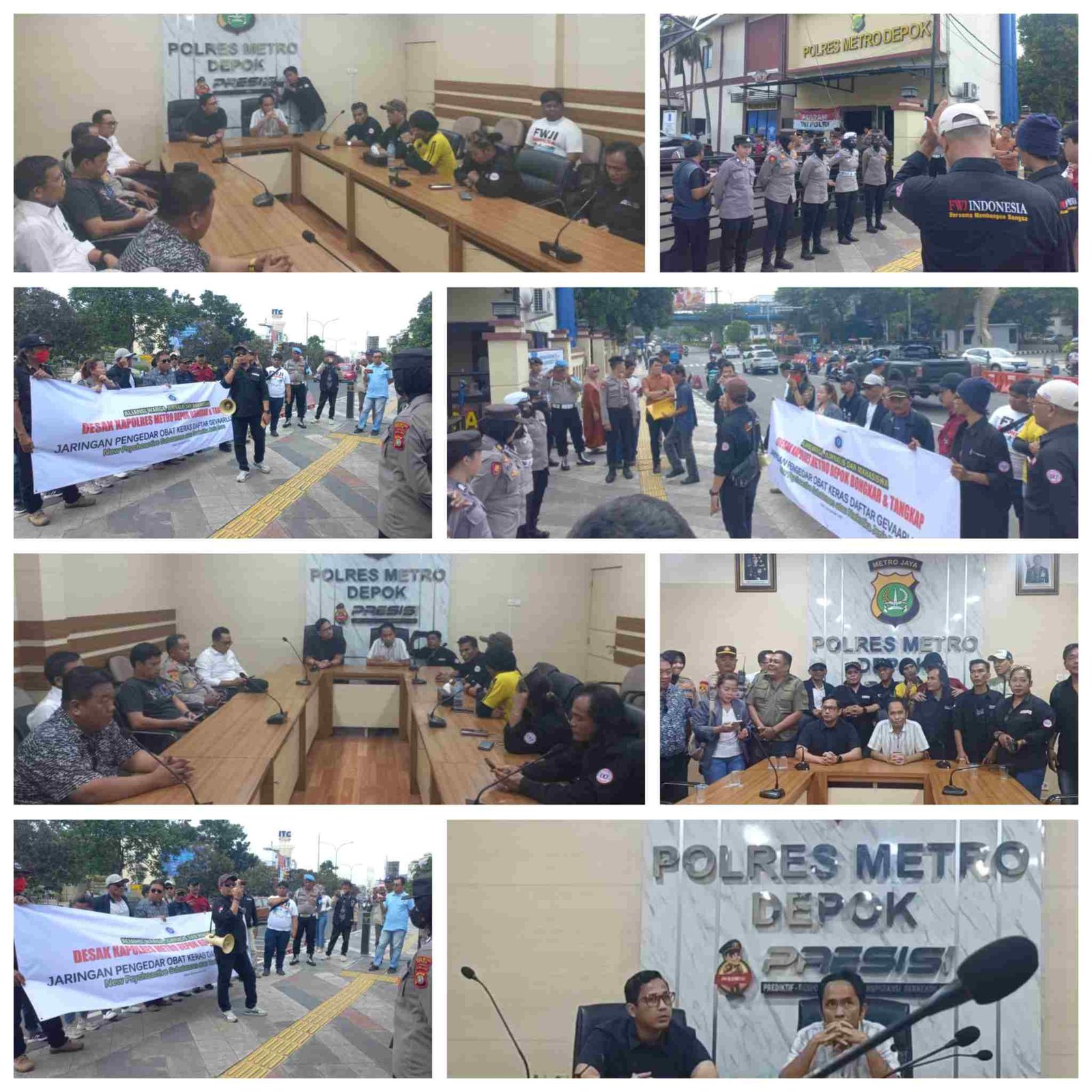 Aksi Masa Geruduk Polres Depok Suarakan Bongkar dan Tangkap Para Pengedar Obat Daftar G