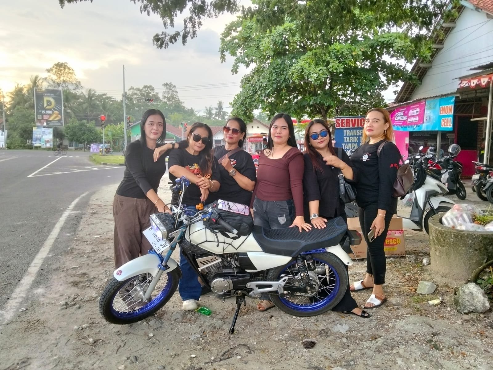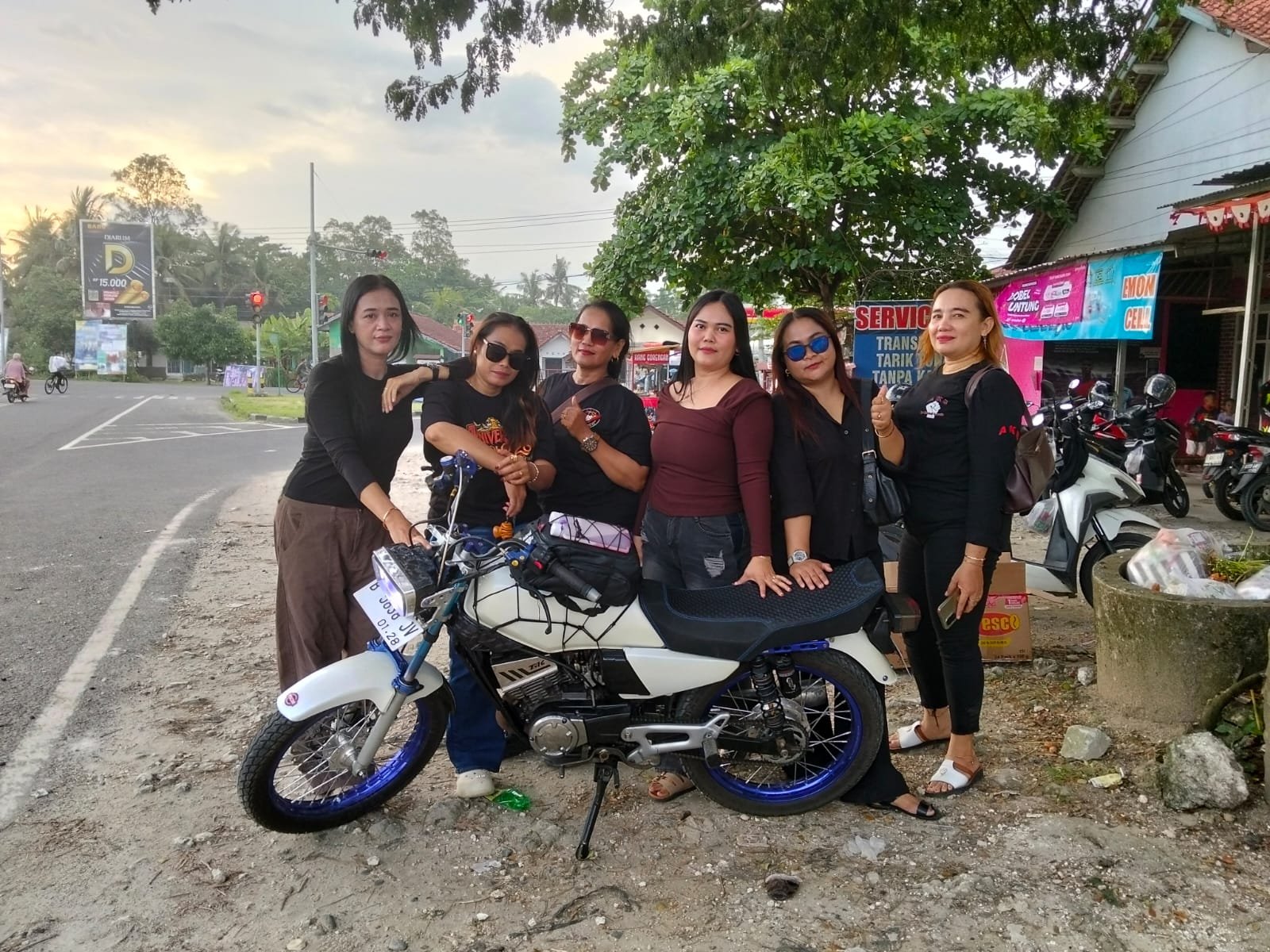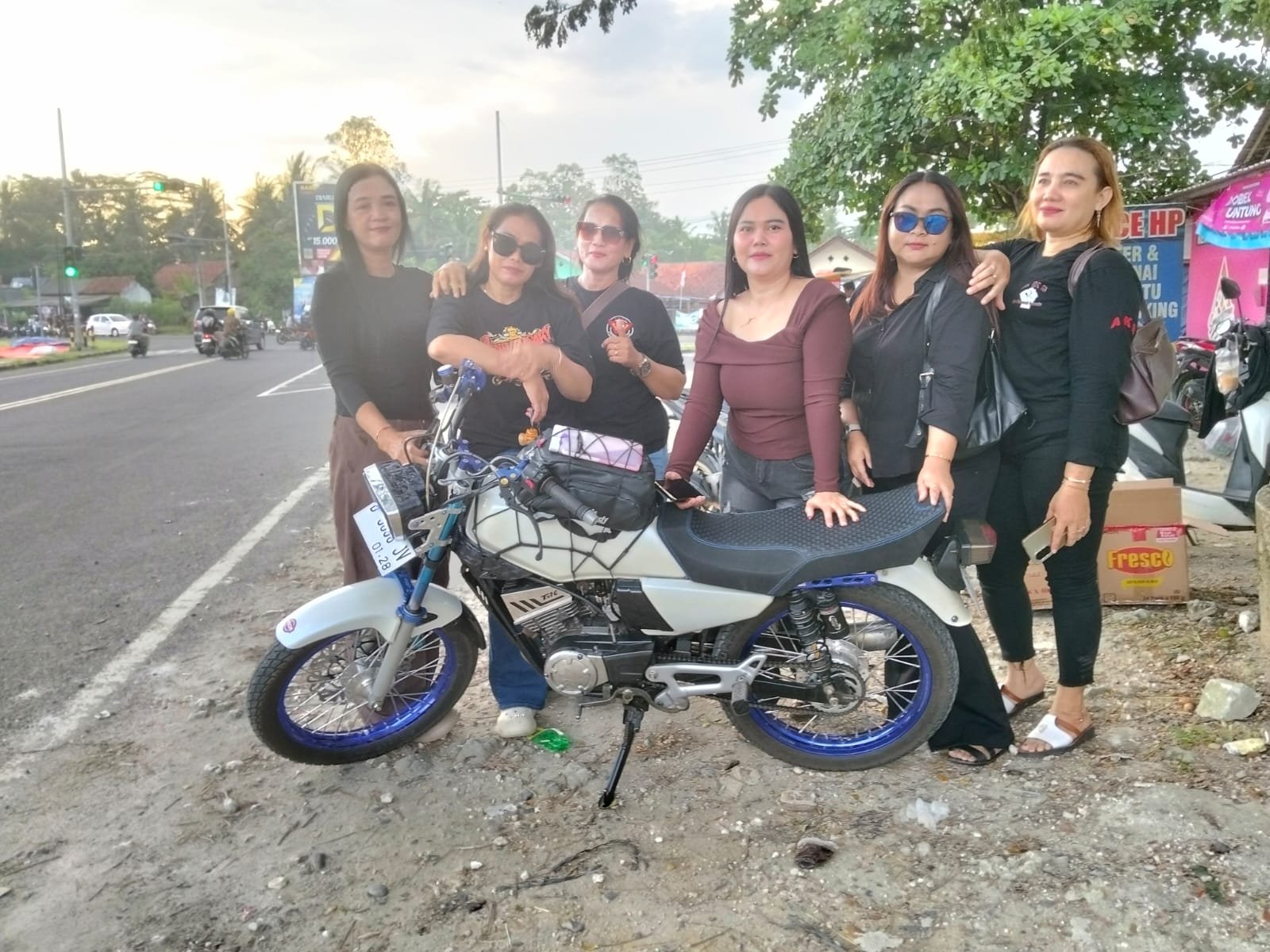 Setelah selesai membagikan takjil, para anggota Group Macan menyempatkan diri untuk berfoto bersama di pinggir jalan dengan latar belakang kendaraan mereka sebagai bentuk dokumentasi kebersamaan dalam aksi kemanusiaan tersebut.