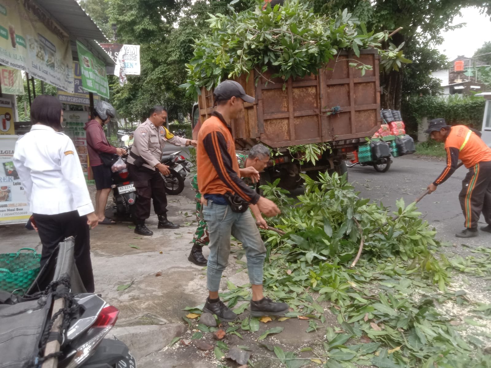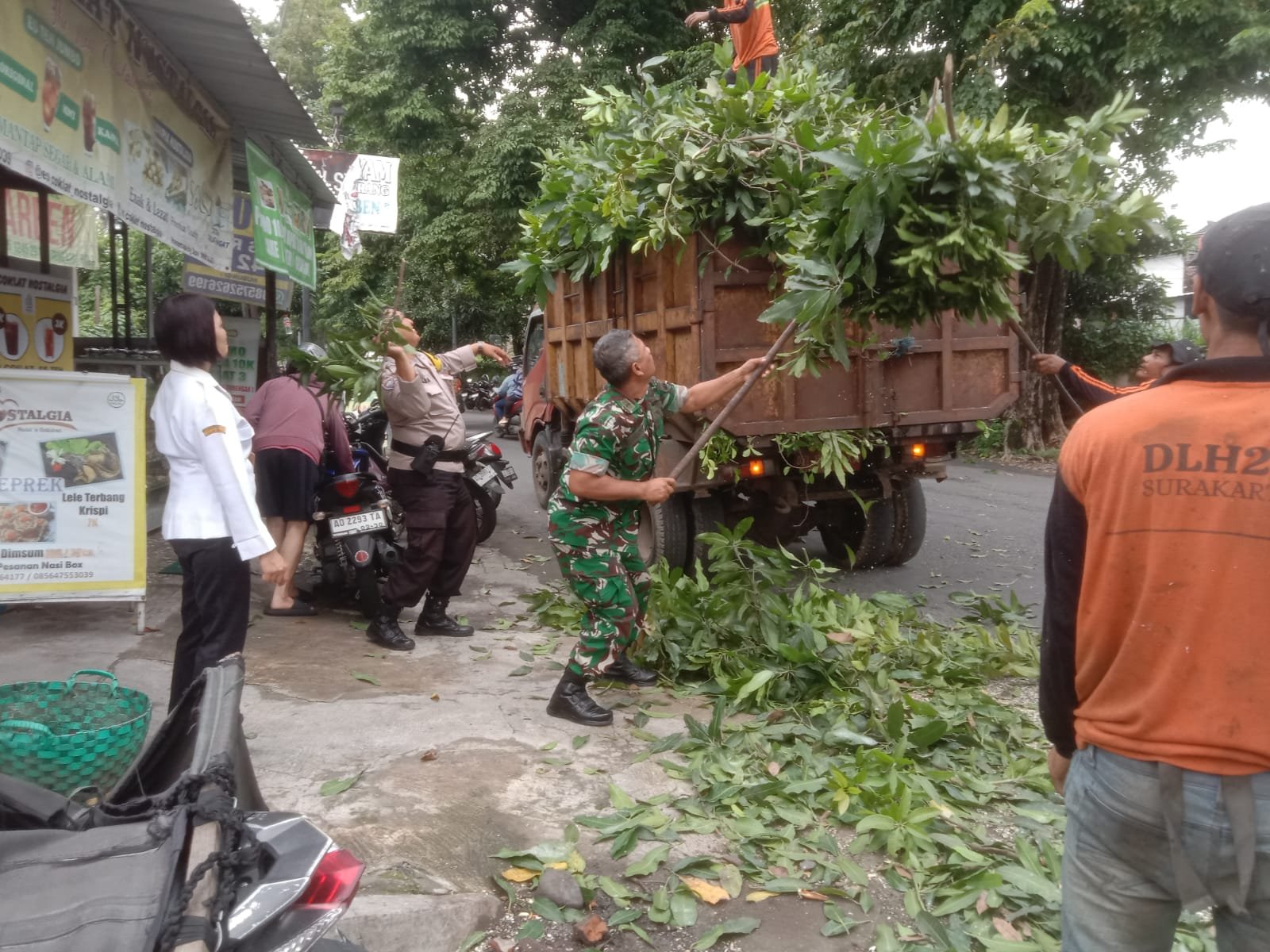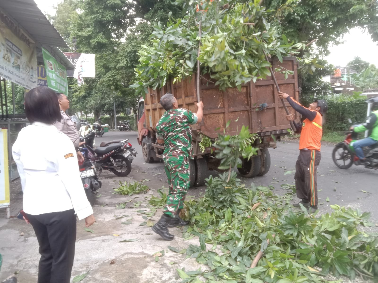 Antisipasi Pohon Tumbang, Babinsa Mangkubumen Pimpin Kerja Bakti Perempelan Ranting Pohon