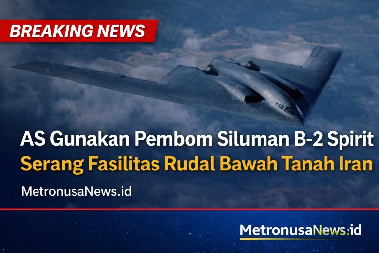 MetronusaNews.id | Internasional – Amerika Serikat dilaporkan melancarkan serangan udara terhadap sejumlah fasilitas rudal balistik bawah tanah milik Iran dengan menggunakan pesawat pembom siluman B-2 Spirit.