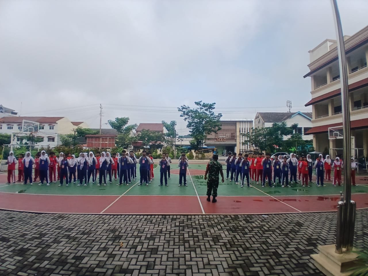 Metronusa News, Surakarta – Dalam rangka meningkatkan kapasitas kepemimpinan dan karakter peserta didik, OSIS SMPN 16 Kota Surakarta. Babinsa Koramil 04/Jebres Kodim 0735/Surakarta, Serka Taufik Mukhlis dan Serda Winarno memberikan materi penguatan karakter melalui kegiatan pemberian materi Penanggulangan Kenakalan Remaja dan Peraturan Baris Berbaris (PBB) kepada Siswa SMPN 16 Kota Surakarta, dihalan depan Gedung SMPN 16 Surakarta Jl. Kolonel Sutarto No.188, Kelurahan Jebres, Kecamatan Jebres, Kota Surakarta, Selasa (07/04/2026).