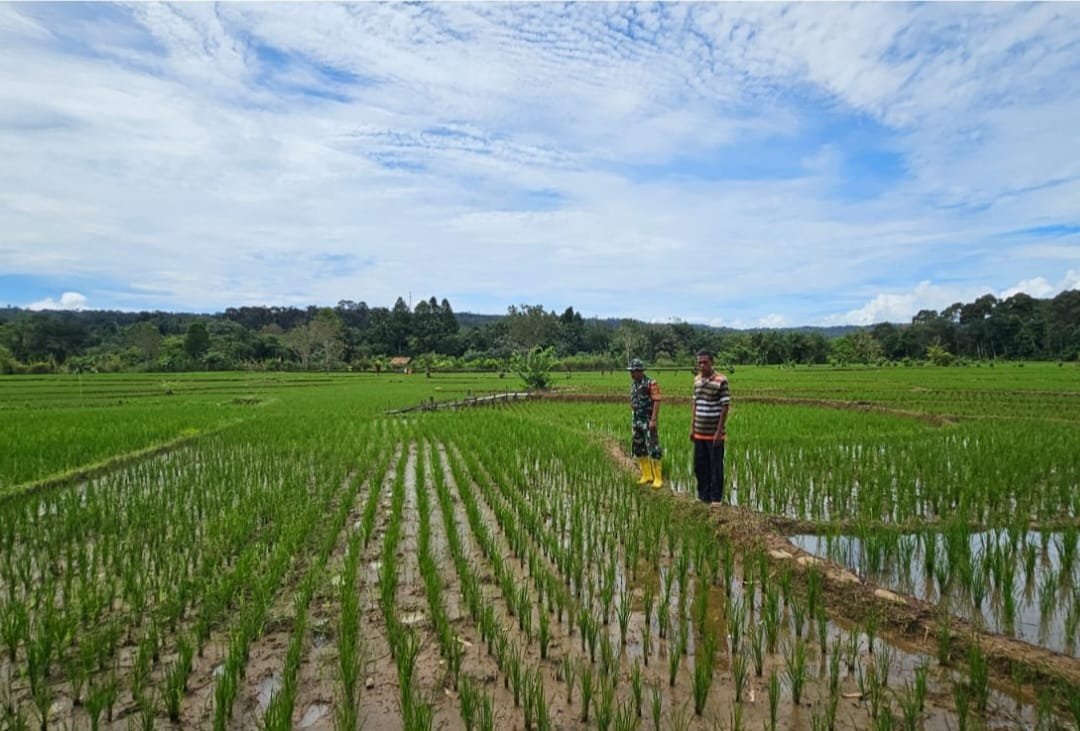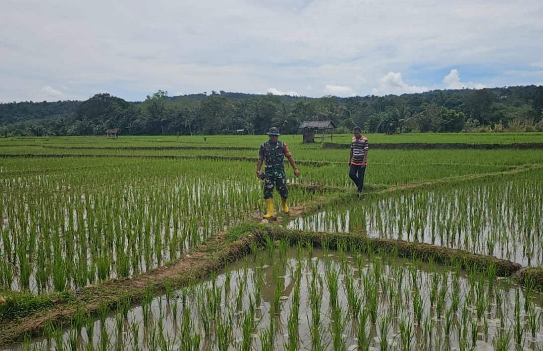 sertu fadli Babinsa Koramil 404-05/TE Kodim 0404/ME melaksanakan kegiatan Program Pemberdayaan Prajurit dan Masyarakat Produktif dibidang pertanian yaitu Mengontrol perkembang tanaman padi di desa embawang, kecamatan tanjung agung, kabupaten muara enim. Selasa (10/03/26).