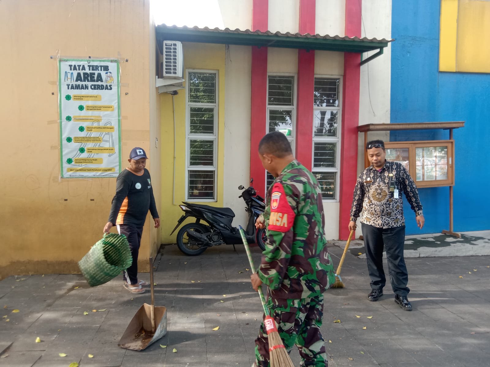 Metronusa News, Surakarta | Babinsa Kelurahan Nusukan, Koramil 02/Banjarsari,Kodim 0735/Surakarta,Serka Supadmo bersama dengan Bapak Panji Selaku TKPK Kelurahan Nusukan melaksanakan Kerja Bhakti Pembersihan Taman Cerdas Kelurahan Nusukan bertempat dilingkungan Taman Cerdas Kelurahan Nusukan Jalan Kediri Utara 1 Bonorejo RT 06 RW 06 Kelurahan Nusukan Kecamatan Banjarsari, Kamis (10/02/2026).