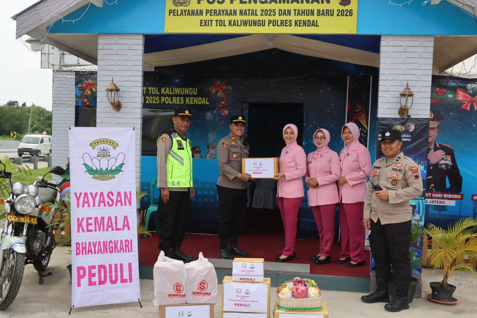 Metronusa News, Kendal | Bhayangkari Cabang Kendal melakukan pengecekan dan supervisi di Pos Pengamanan (Pos Pam) Pintu Exit Tol Kaliwungu, Kabupaten Kendal, Selasa (30/12/2025). Kegiatan ini dilaksanakan dalam rangka mendukung pelaksanaan Operasi Lilin Candi 2025 yang digelar Polres Kendal untuk pengamanan Natal dan Tahun Baru.