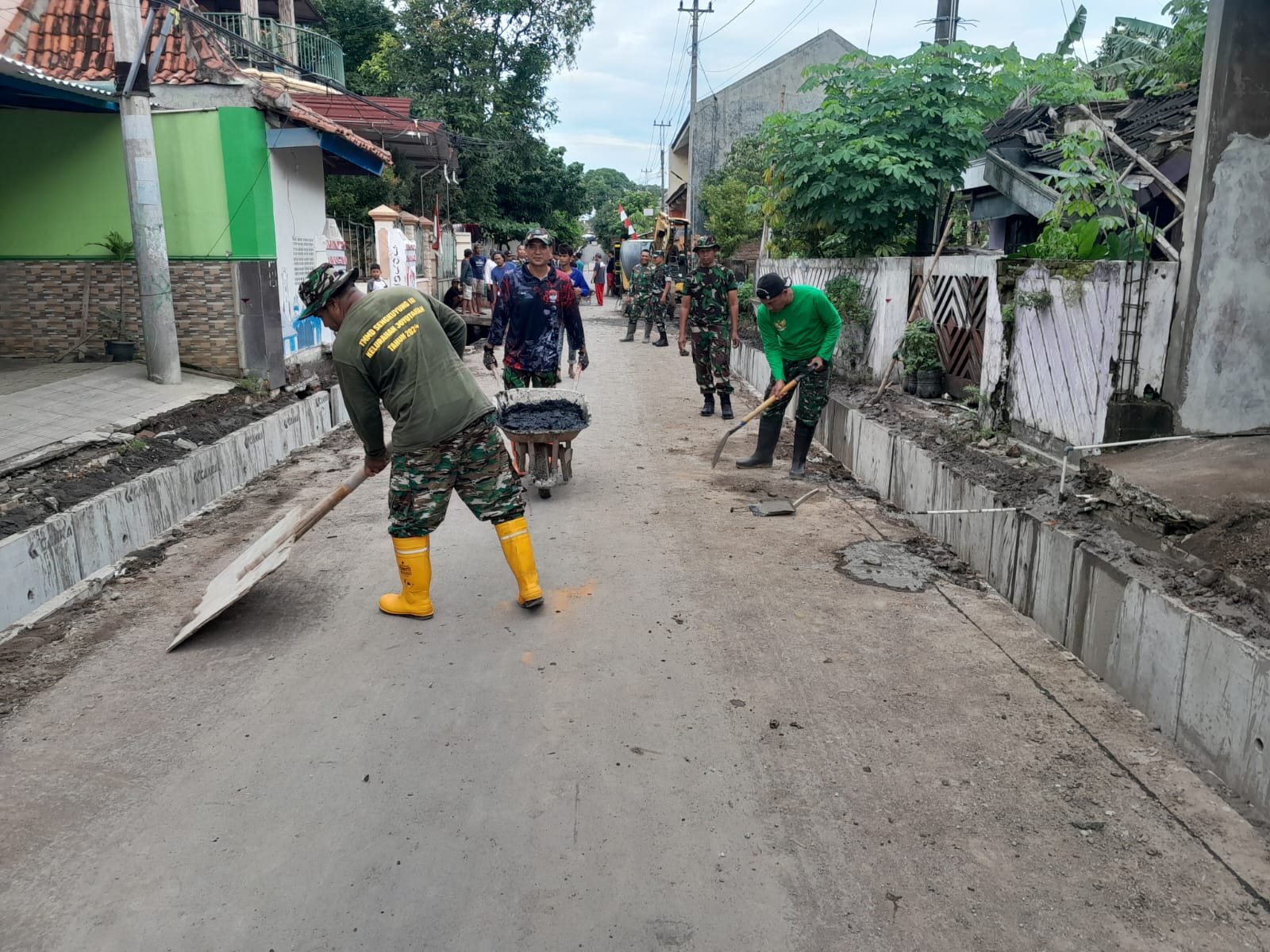 Kondisi cuaca yang panas serta pelaksanaan ibadah puasa tidak menyurutkan ritme kerja anggota Satgas bersama masyarakat setempat. Teriknya matahari justru dijawab dengan semangat gotong royong yang semakin erat demi mengejar target penyelesaian sesuai waktu yang telah ditentukan.