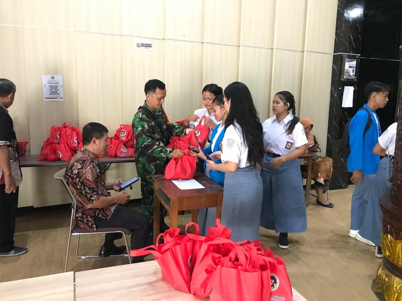Metronusa News, SURAKARTA – Babinsa Kelurahan Kepatihan Wetan Koramil 04/Jebres Kodim 0735/Surakarta Sertu Budiono membantu dalam proses pendistribusian program Makan Bergizi Gratis ( MBG ) kepada siswa SDN Kepatihan Jl. Arifin Rt 02 Rw 01 dan SMKN 08/Surakarta Jl. Sangihe Kelurahan Kepatihan Wetan Kecamatan Jebres, Kamis ( 05/03/2026).