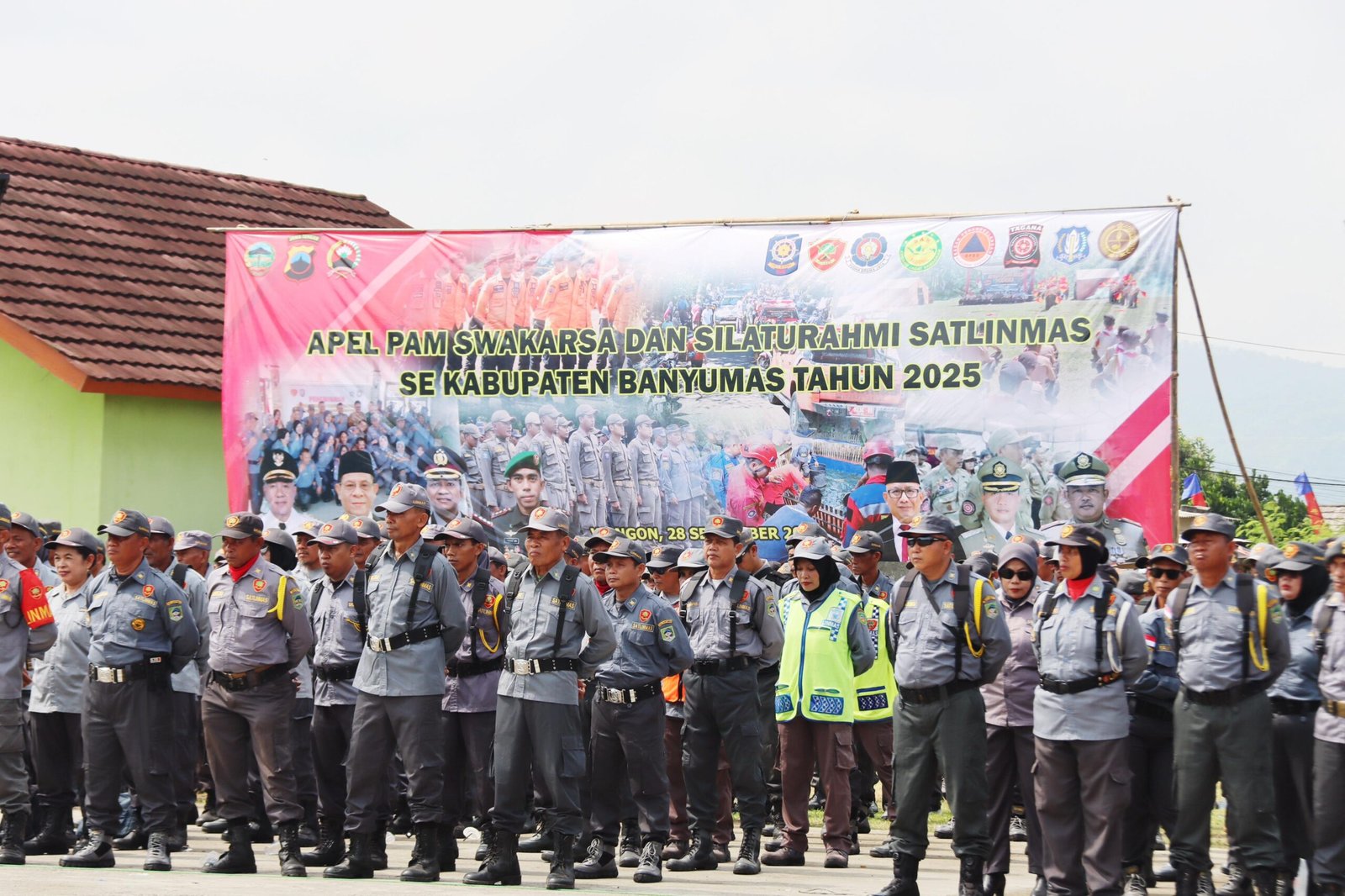 Metronusa News, Banyumas | Bupati Banyumas, Sadewo Tri Lastiono menegaskan bahwa Satlinmas adalah pilar utama dalam menjaga ketertiban dan melindungi masyarakat di Kabupaten Banyumas. Hal tersebut ia sampaikan pada Apel Pengamanan Pam Swakarsa tingkat Kabupaten pada Minggu (28/9/25) di Pelataran Embung Desa Klapagading Kulon Wangon