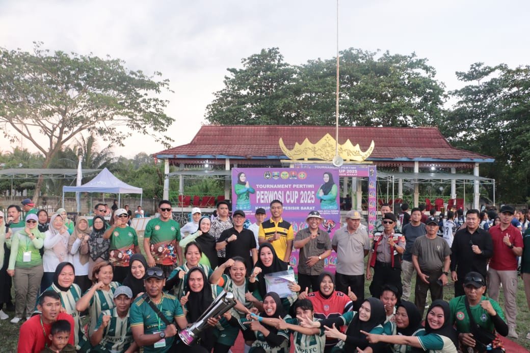 PESISIR BARAT – Bupati Pesisir Barat (Pesibar), Dedi Irawan resmi menutup turnamen Persatuan Wanita Olah Raga Seluruh Indonesia (Perwosi) Cup Tahun 2025, di Lapangan Merdeka Labuhan Jukung Kecamatan Pesisir Tengah, Jumat (5/12/2025).
