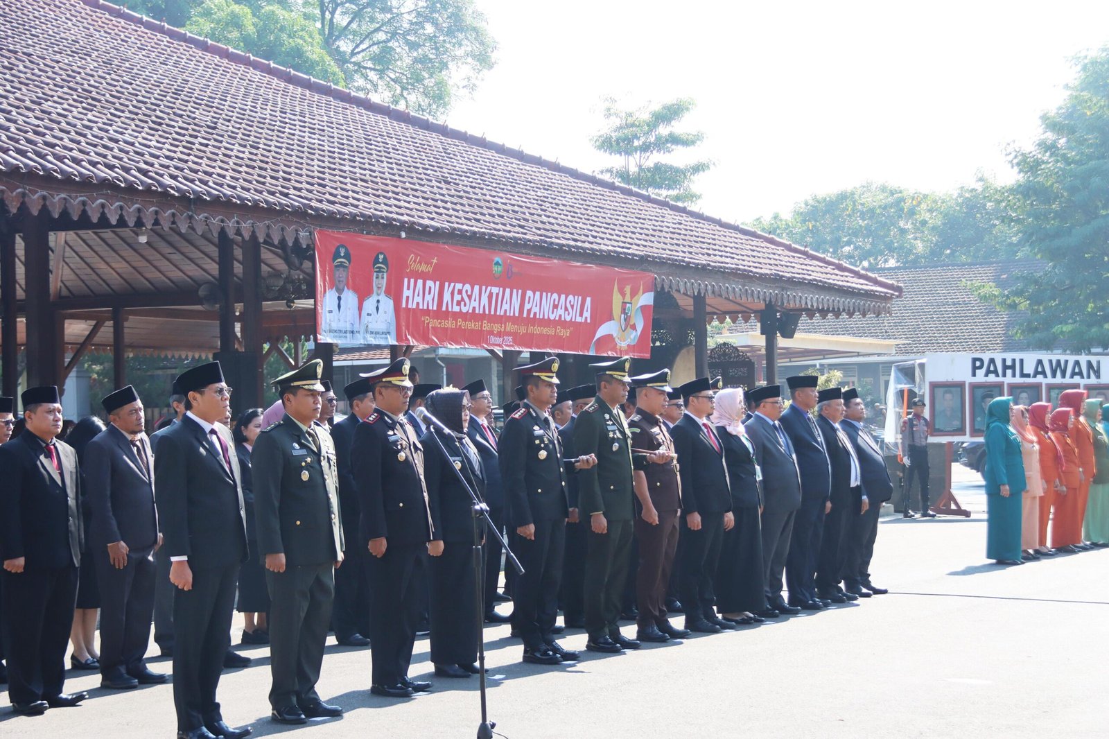 Pemerintah Kabupaten Banyumas menggelar Upacara Peringatan Hari Kesaktian Pancasila pada Rabu (01/10/2025) pagi di Halaman Pendopo Si Panji. Upacara dipimpin oleh Bupati Banyumas Sadewo Tri Lastiono dengan Perwira Upacara Kapolsek Purwokerto Timur Kompol Wiwid Hartono dan sebagai Komandan Upacara Danramil Kalibagor Kapten Kavaleri Khaerudin.