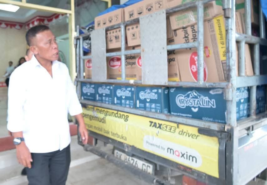 Bantuan yang diserahkan berupa, beras 5 kg 150 sak, air mineral 600 ml 50 dus, pembalut 100 bungkus, minyak goreng 2 L 100 bungkus, sarden 100 kaleng, Mie instan 1.500 bungkus, roti roma 300 bungkus, gula 100 bungkus, telur 100 papan, kecap 100 bungkus, biskuit 150 bungkus, ATB 163 bungkus, pamper L 360 pax, pamper XL 360 pax, pamper M 360 pax, tolak angin 50 box, teh 100 box, dan detergen 498 saset.
