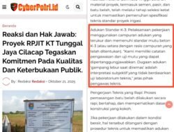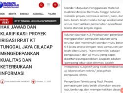 Diduga adanya Berita yang menyesatkan Publik dengan judul “Hak Jawab Resmi Kementerian dan Pelaksana Proyek Irigasi Cilacap : Tegaskan Komitmen Kwalitas dan Transparansi” tentu ini diduga menyesatkan Publik. Yang mana “Hak Jawab Resmi Kementerian” apakah betul yang memberikan hak jawab tersebut adalah Juru bicara Kementan yang memiliki Surat Keputusan Resmi Sebagai Pegawai Negeri Sipil yang memiliki Jabatan Kepala Biro Hubungan Masyarakat dan Informasi Publik Kementerian Pertanian. Kita berharap penulis berita dapat menunjukan surat resmi dari Kementan bahwa statemen itu resmi.