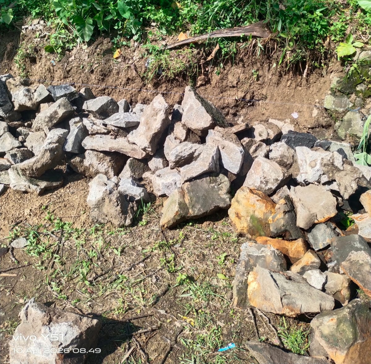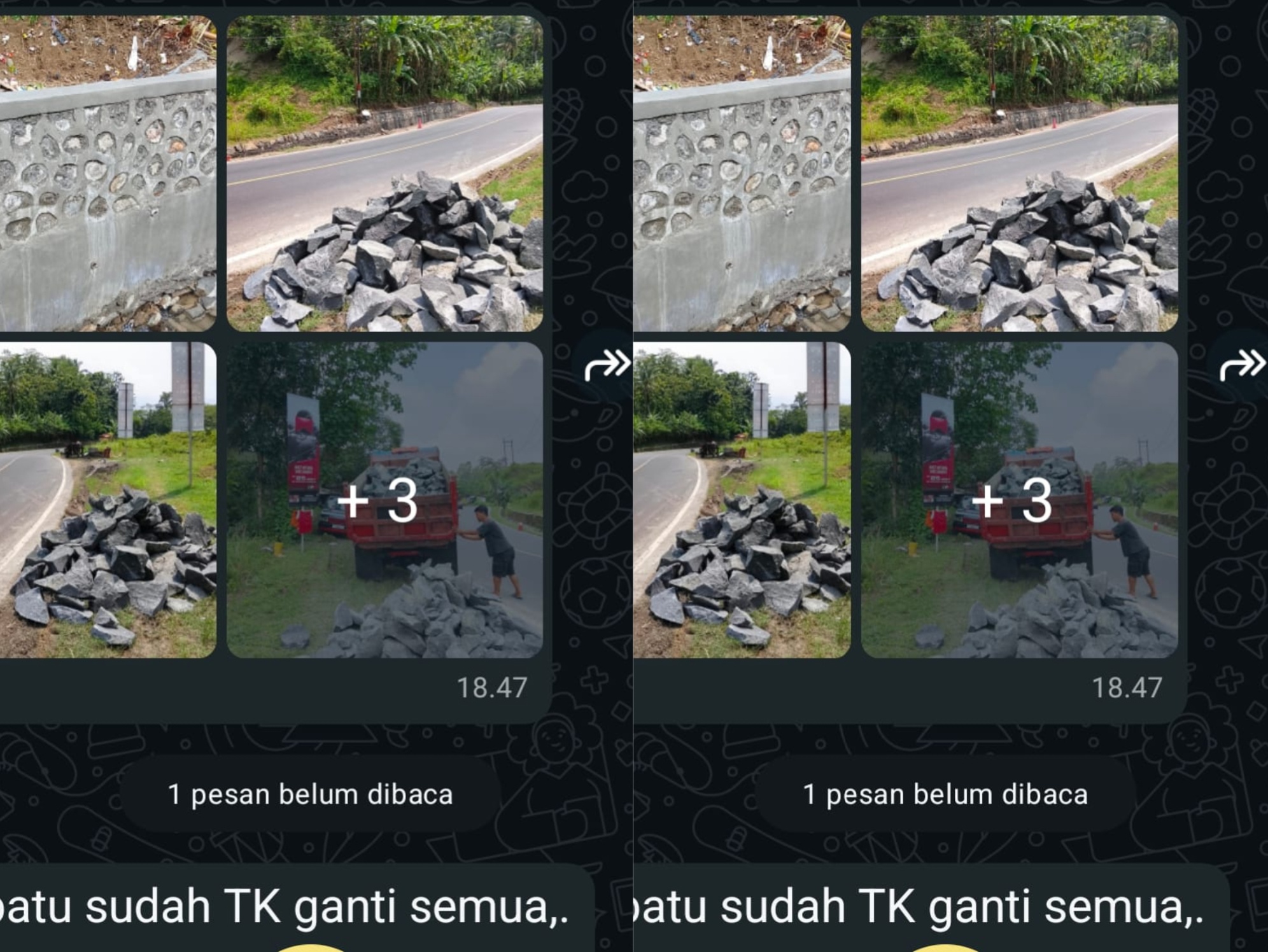 Yang membuat tim Media, menjadi sangat bingung foto tumpukan batu yang dikirim kan lebih kurang tiga ratus meter jarak nya dari lokasi yang diduga menggunakan batu bekas.