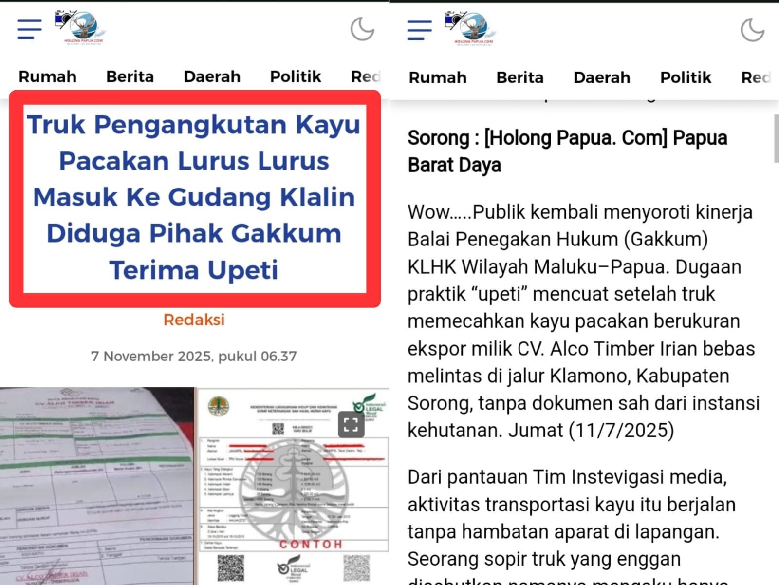 Publik kini menunggu langkah tegas KLHK dan aparat hukum pusat untuk menelusuri dugaan aliran “upeti” yang membuat hukum di Tanah Papua terasa tajam ke bawah, namun tumpul ke atas. (Hp.yos.ika).