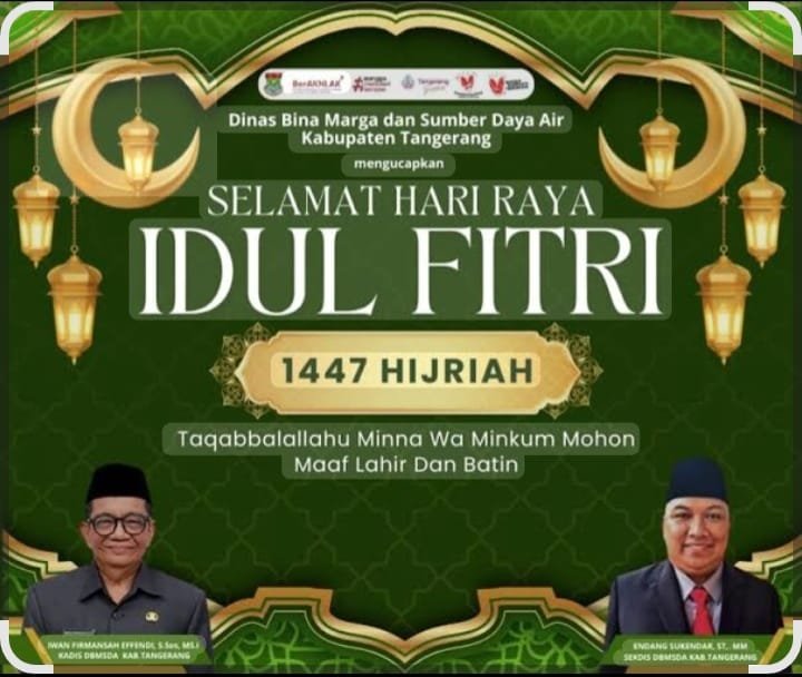 MetronusaNews.id | Tangerang — Dalam rangka menyambut Hari Raya Idul Fitri 1447 Hijriah, Dinas Bina Marga dan Sumber Daya Air (DBMSDA) Kabupaten Tangerang menyampaikan ucapan selamat kepada seluruh masyarakat.