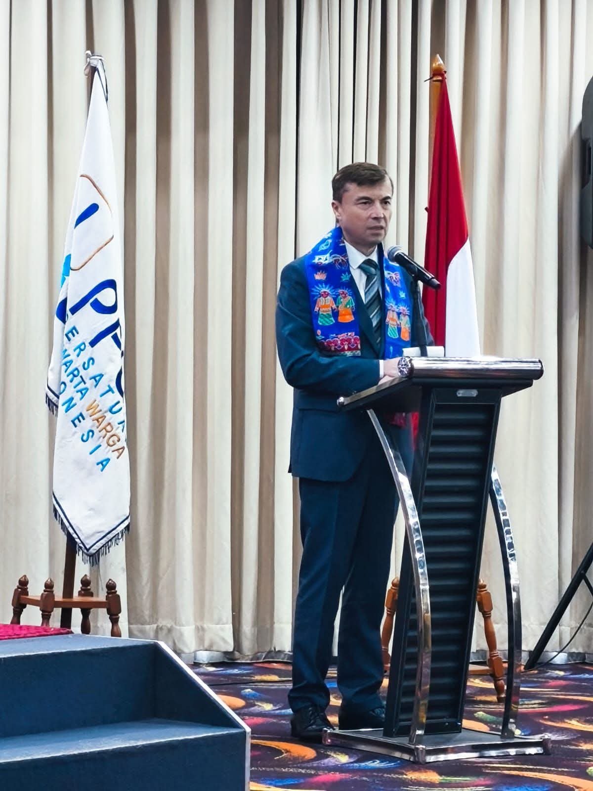 Metronusa News, Jakarta | Duta Besar (Dubes) Rusia untuk Indonesia, Yang Mulia (YM) Mr. Sergei Tolchenov, turut memberikan sambutan dalam acara pembukaan Seminar Nasional dan Rapat Kerja Nasional (Rakernas) Persatuan Pewarta Warga Indonesia (PPWI), yang diselenggarakan dalam rangka perayaan Hari Ulang Tahun (HUT) ke-18 PPWI. Acara tersebut digelar di Hotel Sunlake Waterfront Resort & Convention, Jakarta, pada 11 November 2025.
