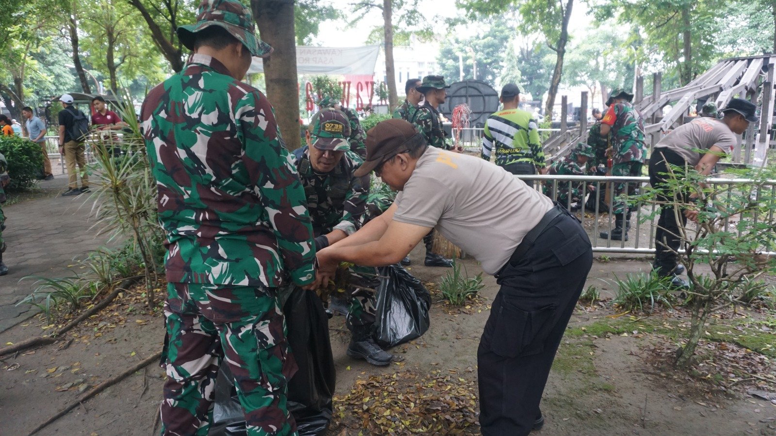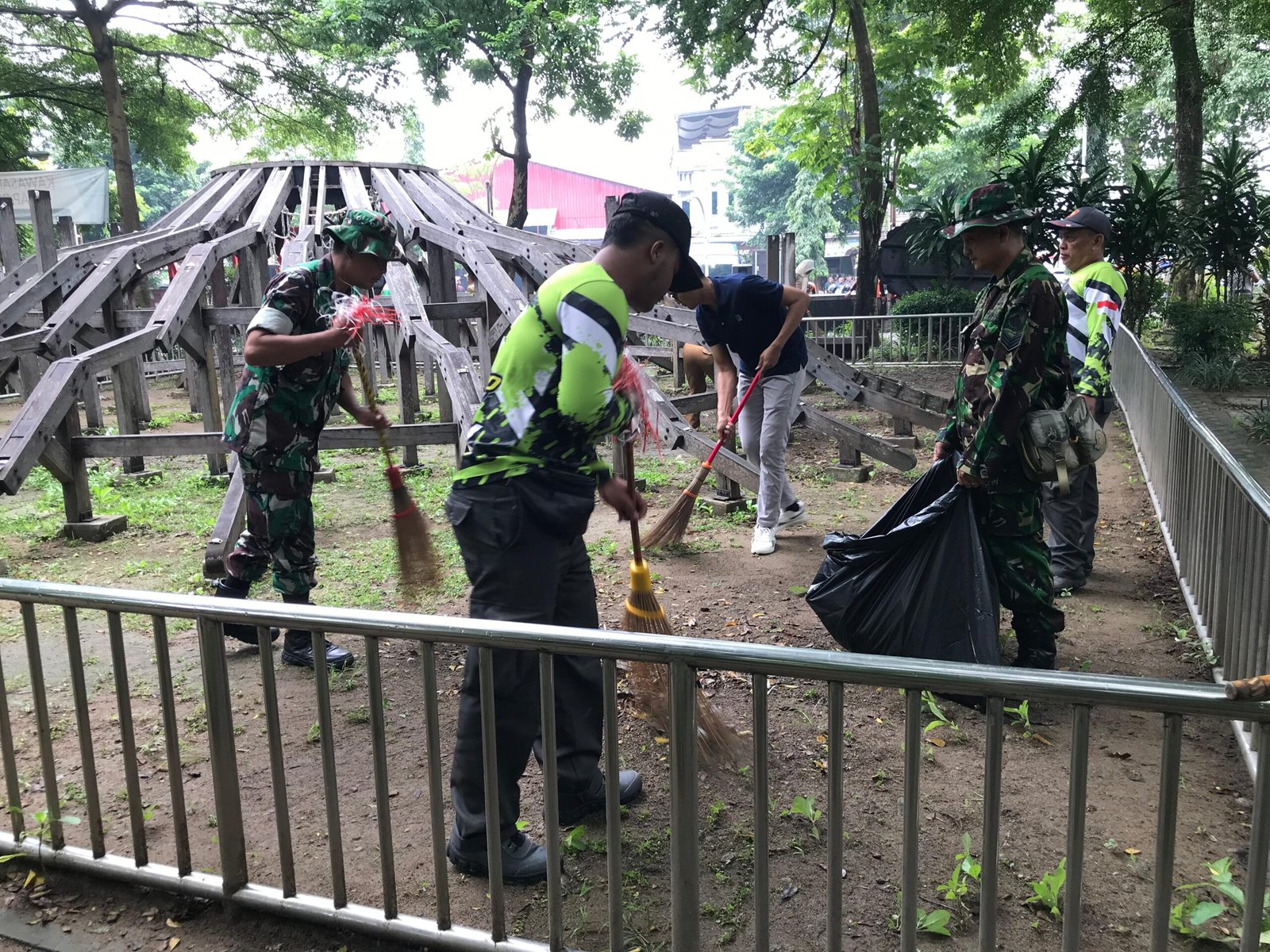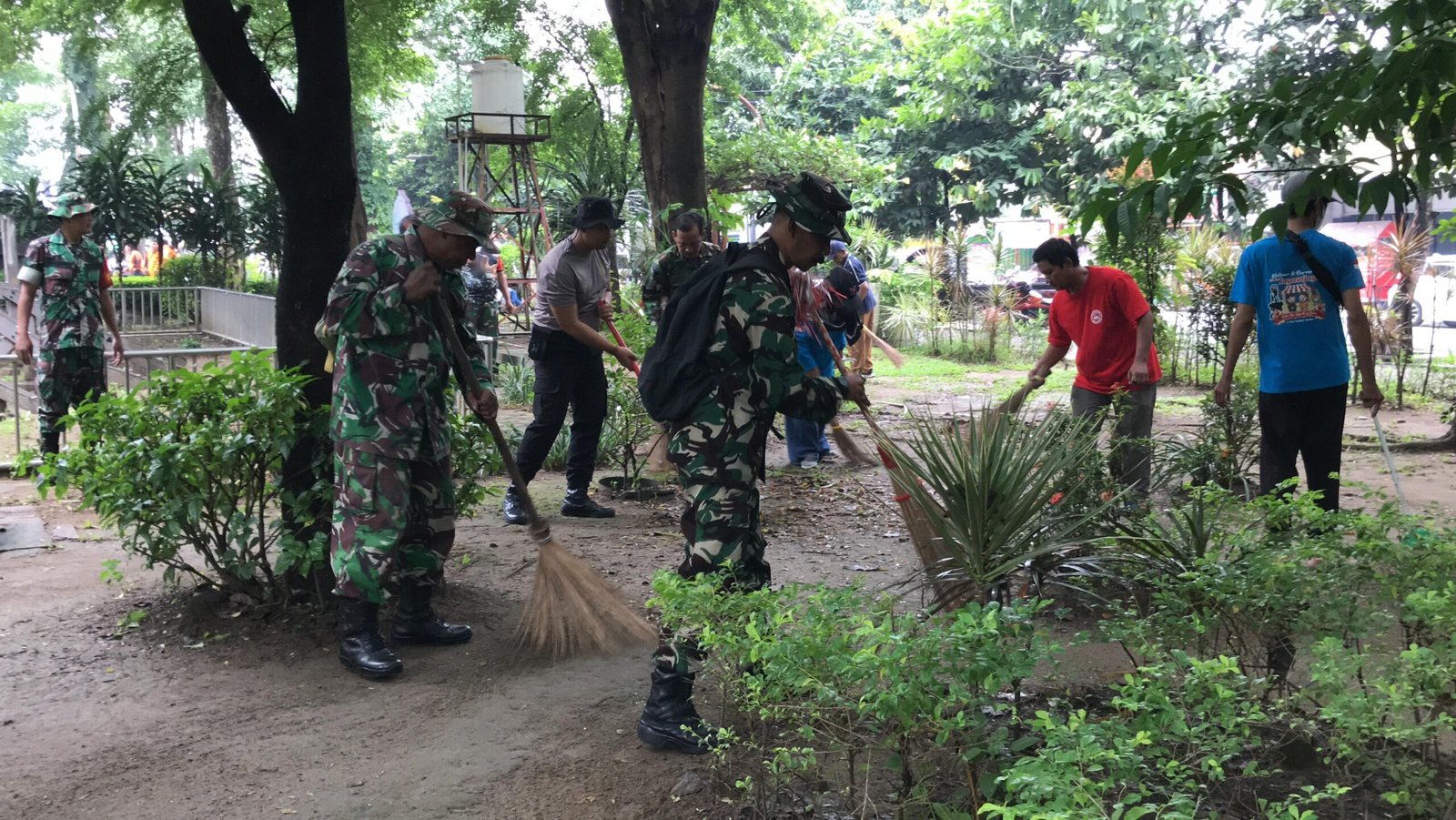 Kerja bakti bersama yang difokuskan dengan pembersihan titik-titik tumpukan sampah liar ini melibatkan personel gabungan TNI-Polri, Forkopimcam, pemerintah desa dan elemen masyarakat. Mereka bahu-membahu, bergotong-royong membersihkan daun yang jatuh dan tumpukan sampah yang dijadikan tempat pembuangan sampah ilegal.