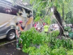 Metronusa News, Surakarta | Babinsa Kelurahan Manahan Koramil 02/Banjarsari Kodim 0735/Surakarta Serma Saring bersama dengan petugas DLH Kota Surakarta dan Anggota Linmas Kelurahan Manahan serta Warga Masyarakat mengevakuasi pohon tumbang yang diakibatkan hujan deras disertai angin kencang di Jl. A. Yani, Kelurahan Manahan Kecamatan Banjarsari, Jum’at (10/10/2025)