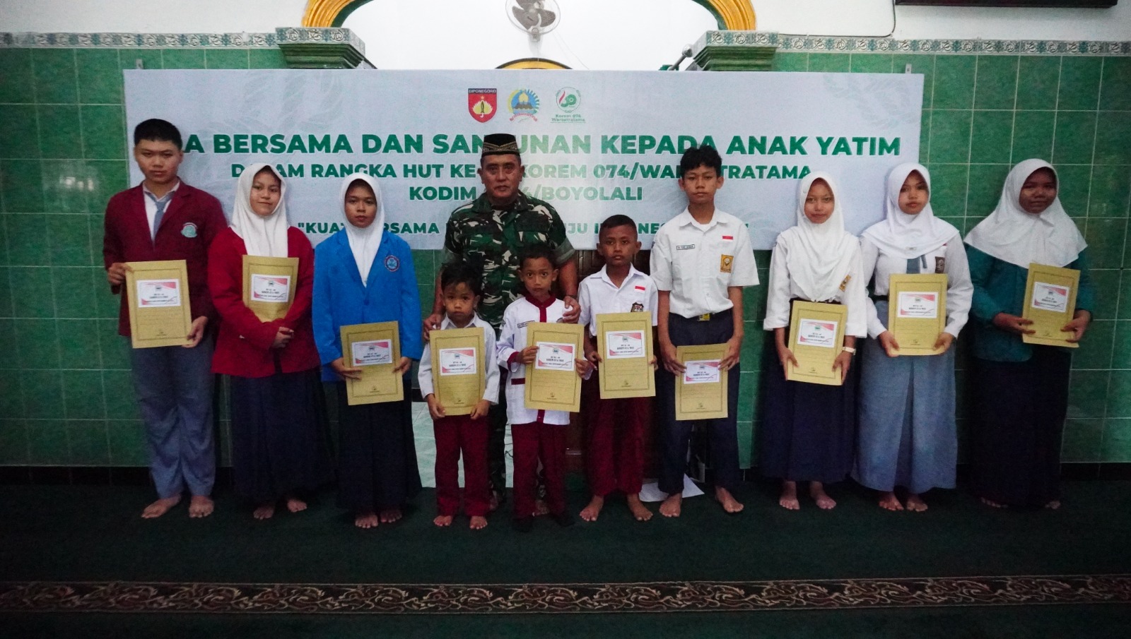 Hangatnya Doa dan Kepedulian: Kodim Boyolali Rayakan HUT Korem 074/Wrt Ke 60 dengan Santunan Anak Yatim