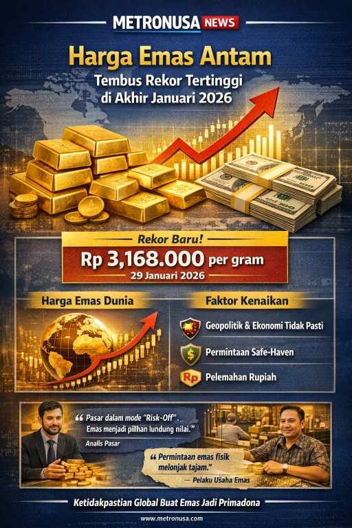 Metronusa News, Jakarta | Pengamat pasar komoditas menilai lonjakan harga emas sepanjang Januari 2026 bukan sekadar faktor musiman, melainkan cerminan meningkatnya kekhawatiran pelaku pasar terhadap kondisi ekonomi global.