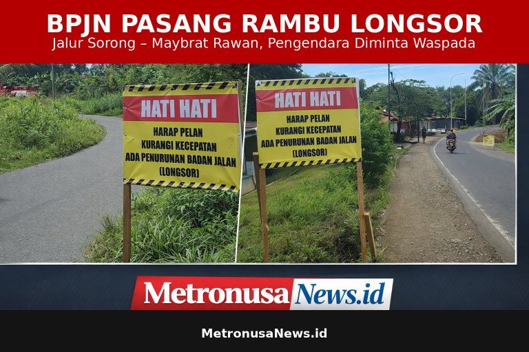 Tim Metronusa News melakukan pemantauan di sejumlah ruas jalan yang menghubungkan Sorong, Klamono, Maybrat hingga Sorong Selatan. Dari hasil pantauan di lapangan, terlihat adanya langkah pencegahan sementara yang dilakukan oleh BPJN I Sorong pada beberapa titik longsoran yang dinilai rawan dan berpotensi membahayakan pengguna jalan.