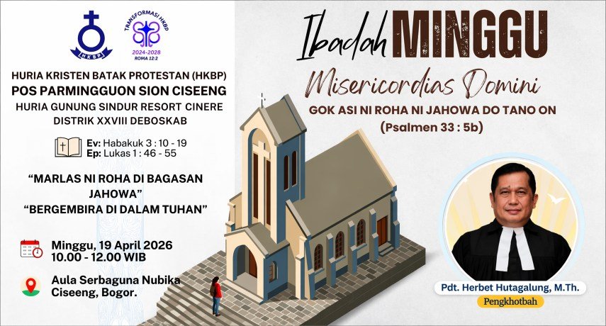 MetronusaNews.id | BOGOR – Huría Kristen Batak Protestan (HKBP) Pos Parmingguon Sion Ciseeng akan menggelar Ibadah Minggu Misericordias Domini pada Minggu, 19 April 2026.