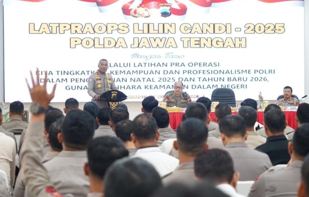 Hal tersebut disampaikan Wakapolda Jawa Tengah Brigjen Pol Latif Usman saat membuka Latihan Pra Operasi (Latpraops) Lilin Candi 2025 di Gedung Borobudur Mapolda Jateng, Rabu (17/12/2025).