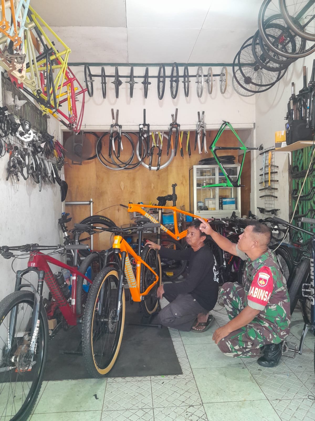Metronusa News, Surakarta – Dalam rangka melaksanakan Pembinaan Teritorial (Binter) dan implementasikan Pembinaan Pertahanan (Bintahwil) di wilayah binaan, Babinsa Jayontakan Koramil 03/Serengan Kodim 0735/Surakarta Serka Sudiyono datangi dan Motivasi Bapak Jupri pelaku UMKM yang keseharian berjualan Sepeda dan sekaligus bengkel sepeda