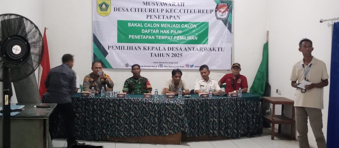 Pelaksanaan pemilihan kepala desa antar waktu desa Citereup kecamatan Citereup akan di laksanakan pada tanggal 27 September 2025 untuk memperebutkan suara warga 262 yang terwakilkan,