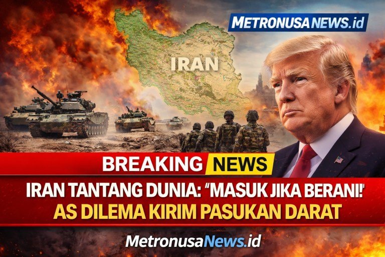 MetronusaNews.id | Internasional – Ketegangan perang di Timur Tengah terus meningkat setelah Iran menyatakan siap menghadapi kemungkinan invasi darat Amerika Serikat di tengah serangan militer besar yang dilakukan AS dan Israel terhadap sejumlah target strategis di wilayah Iran.