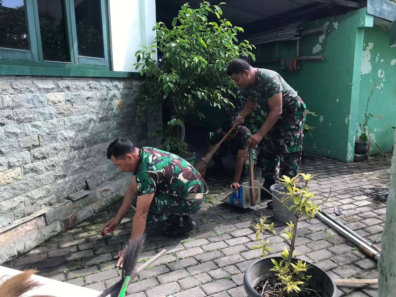 Metronusa News, Surakarta | Anggota Koramil 04/Jebres dipimpin oleh Bati Komsos Koramil 04/Jebres Pelda Teguh Susanto melaksanakan pemeliharaan dan pembersihan sekitar pangkalan dan ruangan kerja staf, bertempat di Makoramil 04/Jebres, Rabu (04/02/2026).