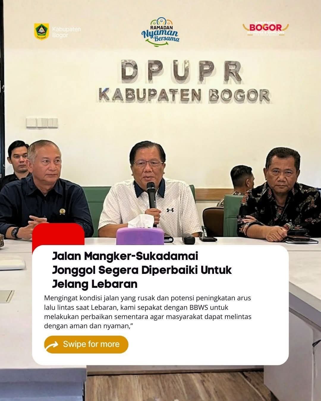 Cibinong — Menjawab keresahan masyarakat terkait kerusakan dan lubang di Jalan Mangker–Sukadamai, Desa Balekambang, Kecamatan Jonggol, Pemerintah Kabupaten Bogor memastikan penanganan segera dilakukan menjelang Hari Raya Idulfitri.