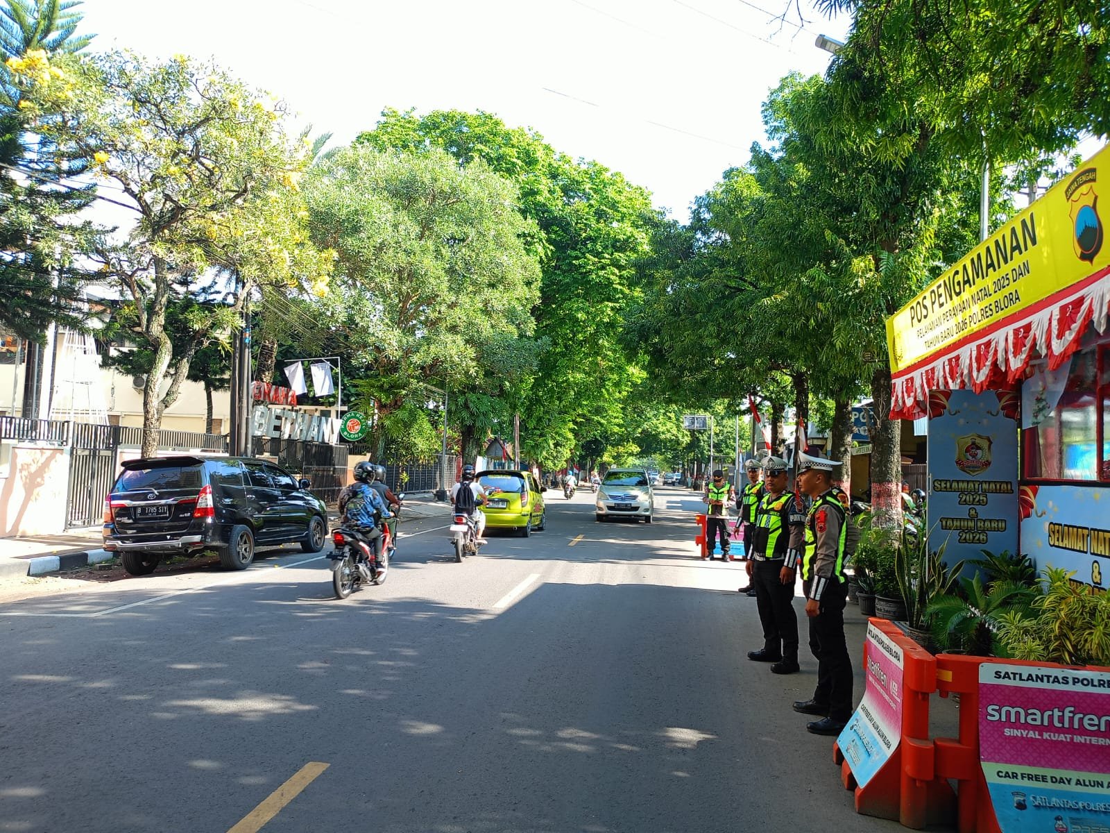 Meski volume kendaraan terpantau lebih padat dari hari biasanya, berkat kesiapsiagaan petugas di lapangan, situasi lalu lintas tetap terkendali tanpa adanya hambatan yang berarti. Personel Pos Pam juga terus memberikan imbauan kepada para pengendara agar tetap berhati-hati dan mematuhi rambu-rambu lalu lintas.