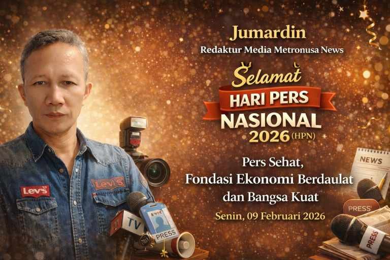 Metronusa News, Cilacap – Dalam rangka memperingati Hari Pers Nasional (HPN) 2026 yang jatuh pada Senin, 09 Februari 2026, Redaktur Media Metronusa News, Jumardin, menyampaikan ucapan selamat sekaligus apresiasi kepada seluruh insan pers di Indonesia.