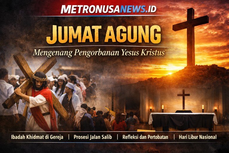 MetronusaNews.id | Nasional — Umat Kristiani di seluruh dunia, termasuk di Indonesia, memperingati Jumat Agung sebagai hari suci untuk mengenang wafatnya Yesus Kristus di kayu salib. Peringatan ini menjadi bagian penting dalam rangkaian Pekan Suci menjelang Hari Paskah.