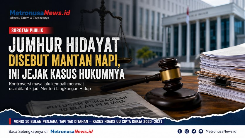 MetronusaNews.id | JAKARTA – Nama Mohammad Jumhur Hidayat kembali menjadi sorotan publik setelah resmi masuk dalam jajaran kabinet pemerintahan terbaru sebagai Menteri Lingkungan Hidup pada April 2026. Di tengah pelantikannya, publik kembali menyinggung status hukum lama yang pernah menjeratnya hingga membuatnya kerap disebut sebagai “mantan napi”.