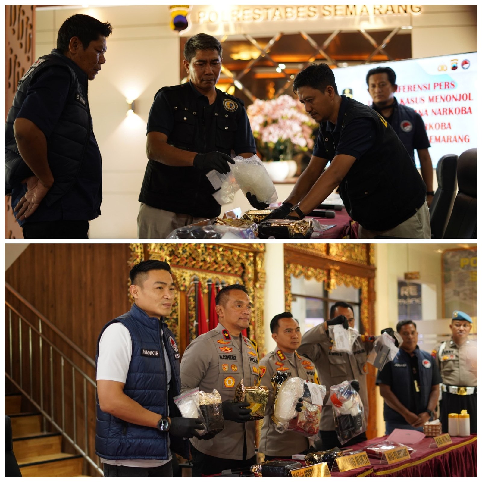 Press release digelar di lobi Mapolrestabes Semarang pada Jumat (20/3/2026) pukul 14.00 WIB. Dalam keterangannya, Brigjen Pol. M. Syahduddi menegaskan bahwa terdapat dua perkara narkotika yang diungkap dan keduanya memiliki keterkaitan dalam satu jejaring yang sama.