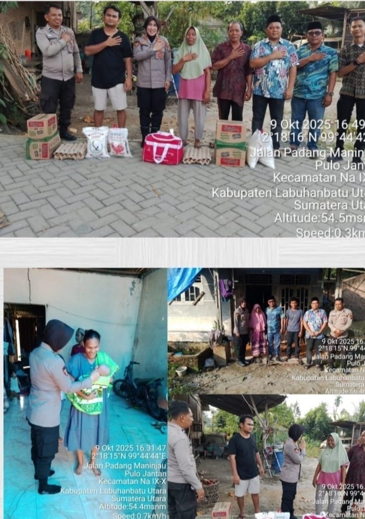 Metronusa News, Labura – Polsek Na:IX-X yang dipimpin langsung Kapolsek AKP Yustina SH MH mengadakan giat Bhakti Sosial (Baksos) atau dengan istilah yang lebih dikenal dengan Sambang Desa terhadap Warga Masyarakat yang terkena bencana angin puting beliung yang terjadi pada Rabu (08/10/2025)
