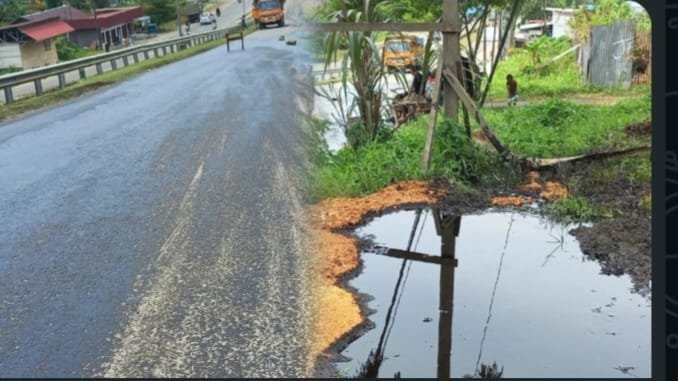 Kebocoran Pipa Minyak Pertamina di Tanjakan Km 17 Jalan Sorong – Klamono