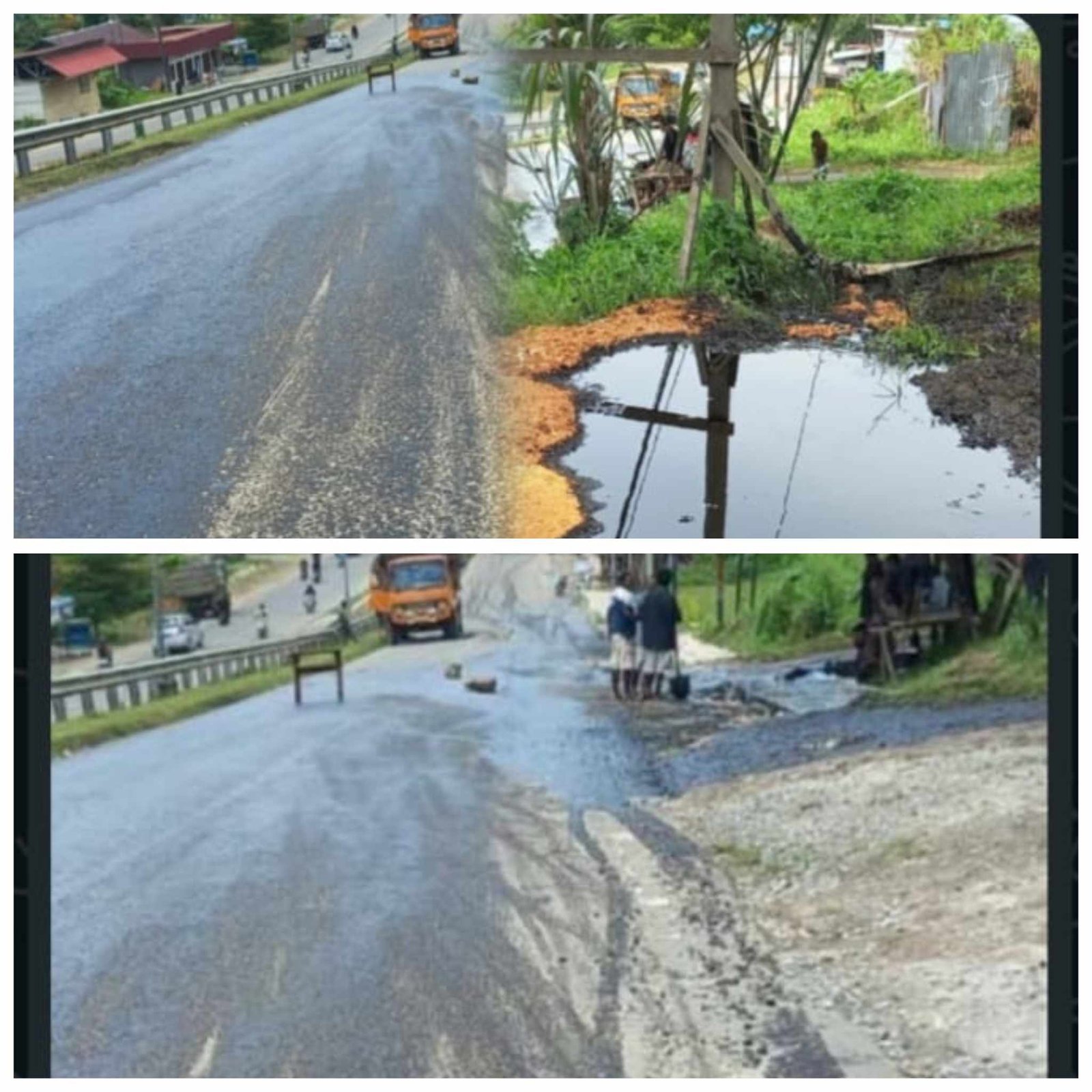 ” pada hal Minyak mengalir terus dari pagi. Tidak ada yang datang tutup atau amankan lokasi. Ini jalan tanjakan, berbahaya sekali. Jika ada pengendara yang jatuh, siapa yang tanggung jawab?” tegas seorang warga yang melintas.