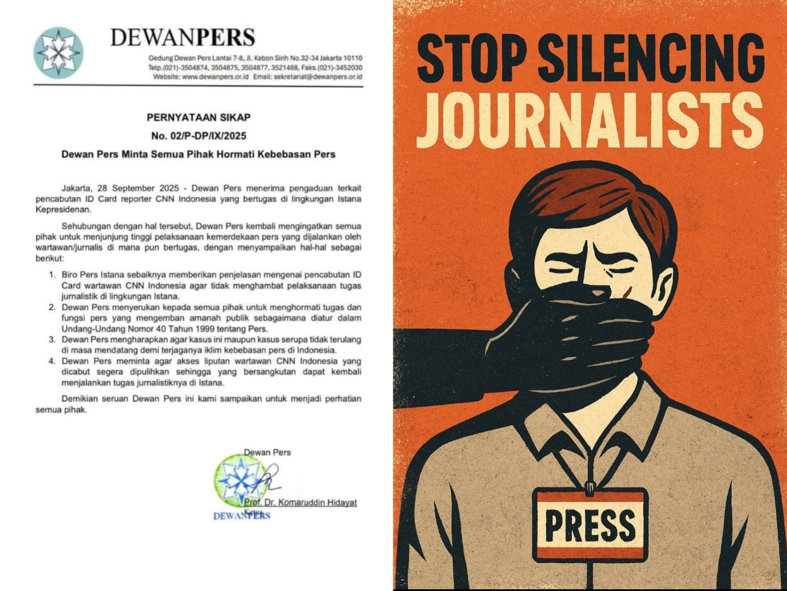 “Kami mendesak Presiden Prabowo Subianto memecat Kepala BPMI Setpres sebagai pihak yang bertanggung jawab atas kasus memalukan itu. Mencabut izin Liputan dengan alasan apapun merupakan pelanggaran Pasal 18 ayat (1) UU Nomor 40 tahun 1999 tentang Pers, dan bisa dipidana dengan sanksi kurungan 2 tahun penjara,” tegas alumni PPRA-48 Lemhannas RI tahun 2012 itu dan menambahkan bahwa pencabutan kartu izin liputan wartawan CNN Indonesia karena mengajukan pertanyaan kepada Presiden, apalagi masalah yang dipertanyakan adalah kepentingan rakyat dan bersifat urgent, merupakan pelanggaran terang-terangan terhadap kebebasan pers.