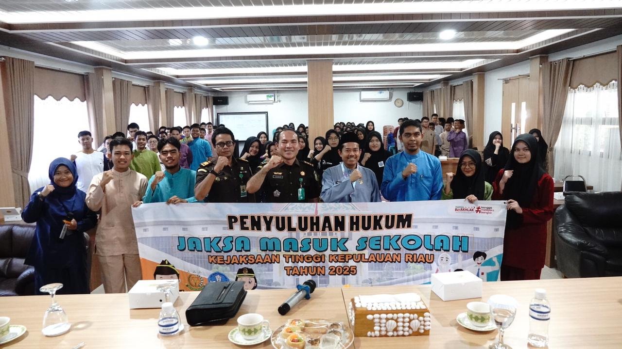 Meteonusa News, Kejati Kepri – Batam | Kejaksaan Tinggi Kepulauan Riau melalui Program Pembinaan Masyarakat Taat Hukum (BINMATKUM) pada kegiatan Penyuluhan Hukum kembali menggencarkan kegiatan Program Jaksa Masuk Sekolah di Madrasah Aliyah Negeri 1 Batam dengan mengangkat tema tentang “Pencegahan Penyalahgunaan dan Peredaran Gelap Narkotika, Psikotropika dan Zat Adiktif Lainnya (Napza) serta Anti Perundungan (Bullying) dan Bijak Bermedia Sosial”. Kegiatan ini dilaksanakan dalam rangka pembentukan revolusi mental karakter dan peningkatan kesadaran hukum anak bangsa merupakan generasi penerus bangsa, Kamis (25/09/2025).