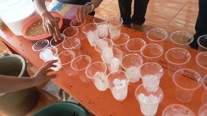 Kegiatan praktik pembuatan Dawet Ayu, para pesertanya yang di dominasi ibu ibu ini tampak antusias mengikuti setiap sesi pelatihan hingga proses penyajian minuman tradisional tersebut.