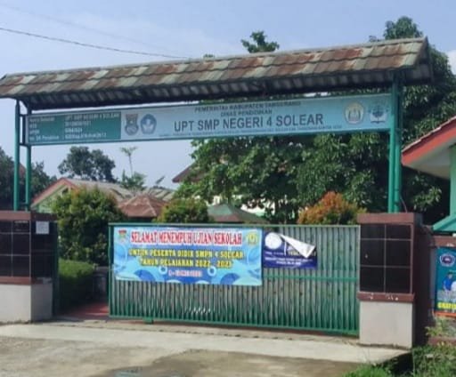 SMPN 4 Solear, berada di Jln Taman Kirana Surya Blok A, Desa/Kelurahan Pesanggrahan Kecamatan Solear Kabupaten Tangerang- Banten.