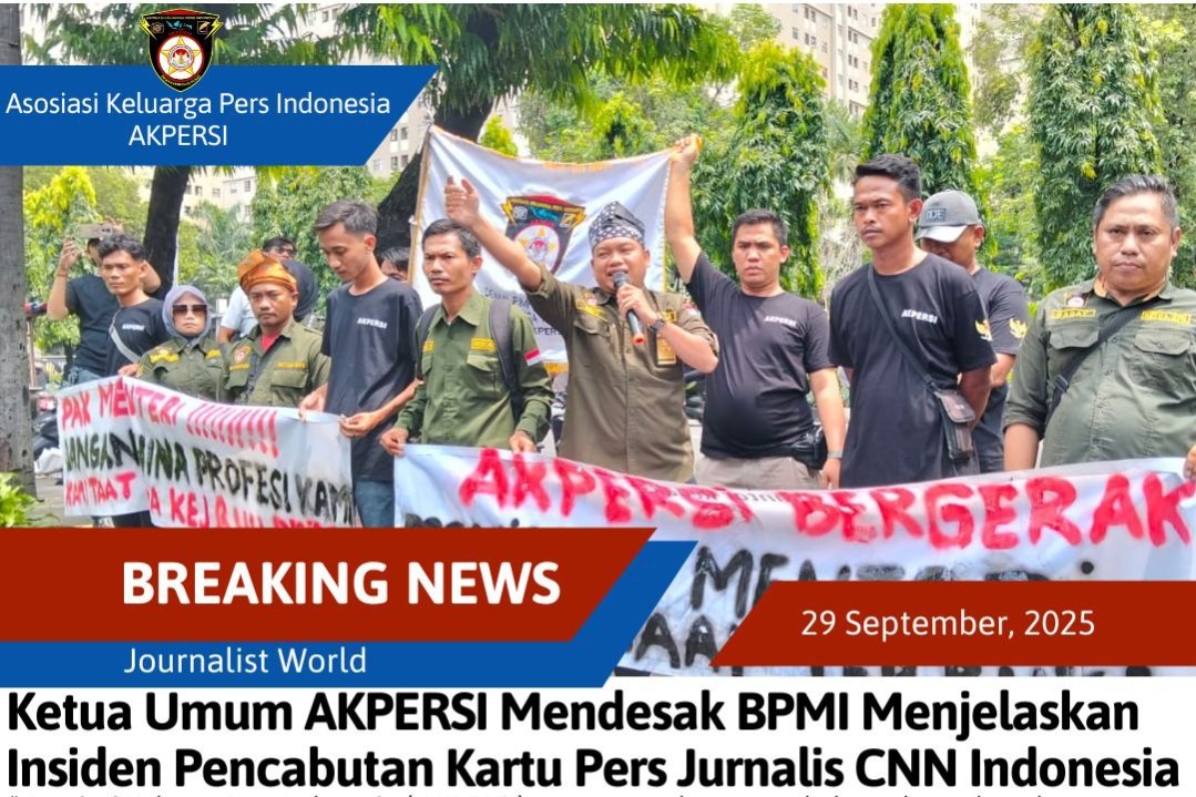 “ Asosiasi Keluarga Pers Indonesia (AKPERSI) mengecam keras segala bentuk pembungkaman pers pada jurnalis yang sedang menjalankan tugasnya saat liputan. Bahkan kita pun tidak pernah membiarkan siapapun yang melakukan intimidasi dan intervensi terhadap wartawan. Apalagi hal ini terjadi pada salah satu rekan jurnalis CNN yang id pers diambil langsung oleh Biro Pers,Media, dan Informasi Sekretariat Presiden pasca adanya pertanyaan terkait topic kasus keracunan Makan Gratis Kepada Presiden Prabowo Subianto. Maka AKPERSI mendesak kepada BPMI untuk menjelaskan kejadian tersebut kepada masyarakat agar ke depannya tidak terjadi lagi kepada insan pers,” Ujar Rino Triyono.,S.Kom.,S.H.,C.IJ.,C.BJ.,C.EJ.
