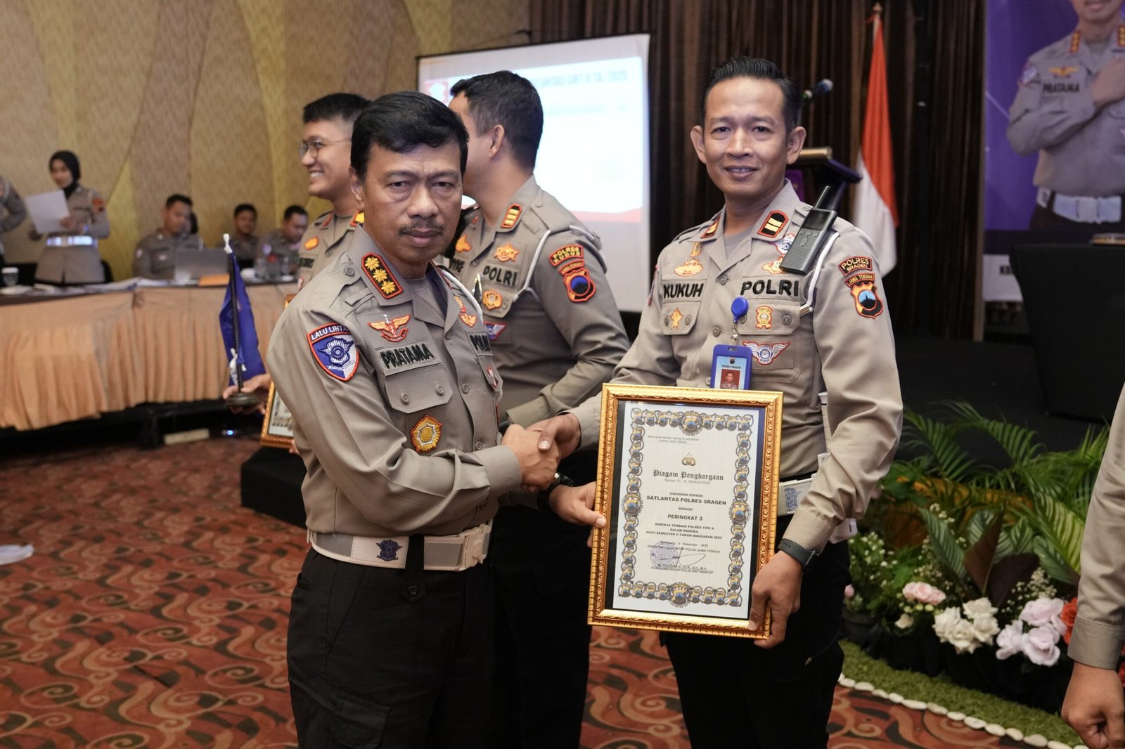 Dalam kategori penilaian kinerja Kasat Lantas Tipe A, Satlantas Polres Sragen masuk dalam tiga besar bersama Polresta Banyumas dan Polres Kudus. Prestasi ini mencerminkan konsistensi inovasi pelayanan, peningkatan kamseltibcarlantas, serta efektivitas penegakan hukum sepanjang tahun berjalan.