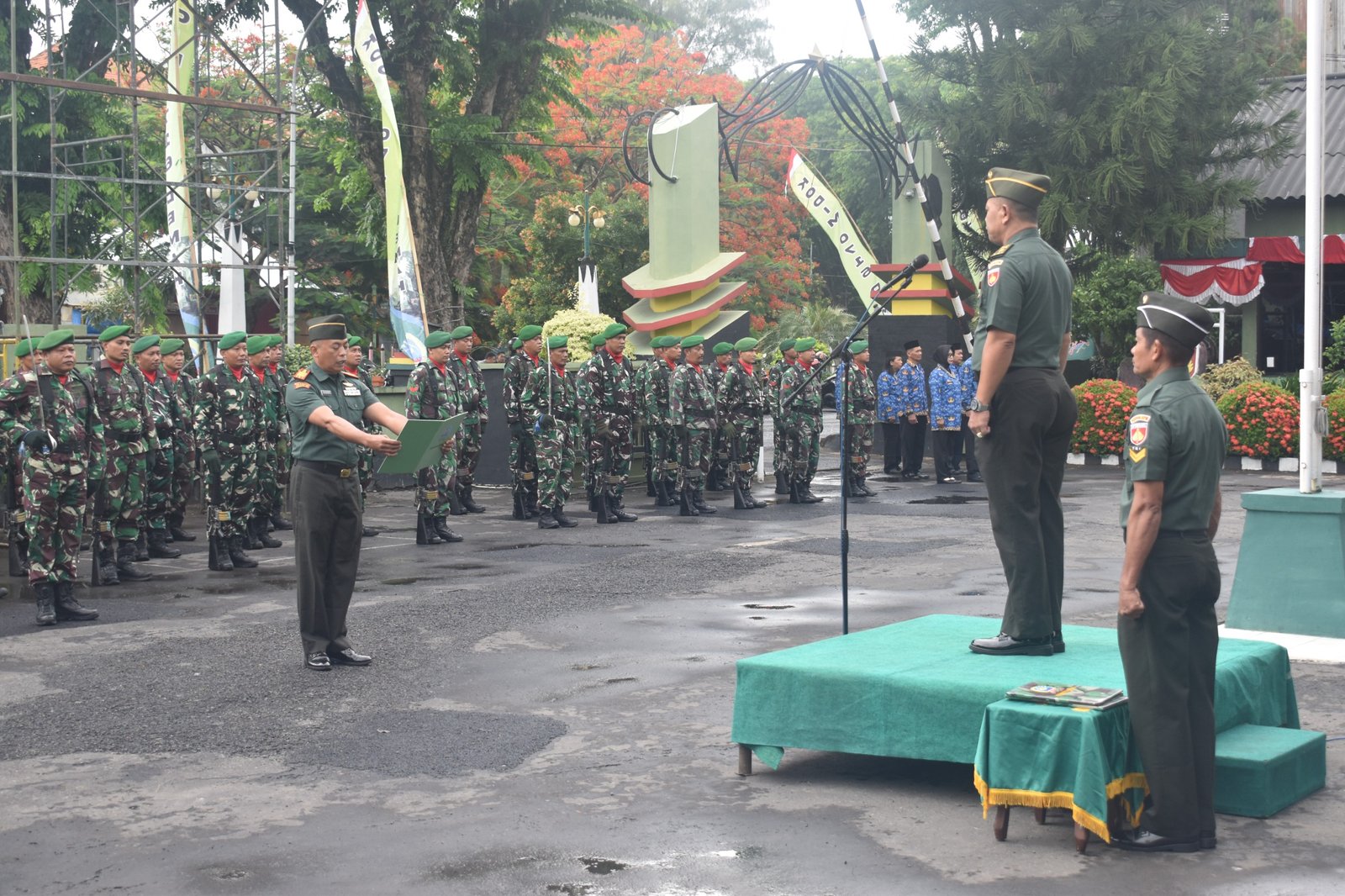 Upacara yang berlangsung khidmat ini dipimpin oleh Kasdim 0716/Demak Mayor Arm Sarifudin Widiyanto, bertindak sebagai Perwira Upacara Pasipers Kapten Inf Ahmad Zazuli, Komandan Upacara Kapten Kav Slamet Udoyo dan di ikuti seluruh Personel Kodim 0716/Demak baik Militer dan PNS.