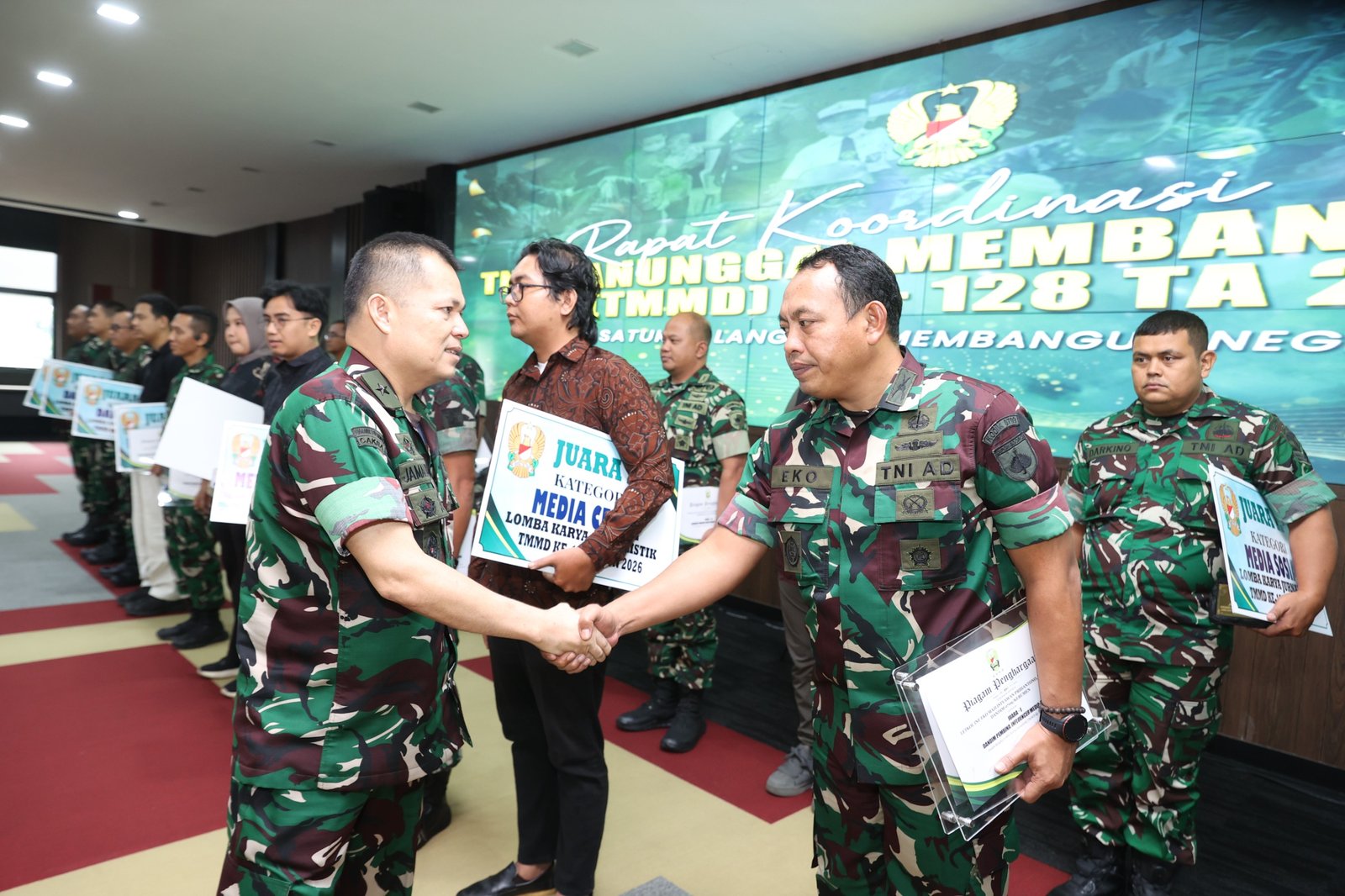 Matronusa News, Jakarta – Jajaran Kodam IV/Diponegoro berhasil menorehkan prestasi gemilang dengan mendominasi gelar juara pada Lomba Karya Jurnalistik (LKJ) TNI Manunggal Membangun Desa (TMMD) Reguler ke-127 Tahun Anggaran 2026 tingkat nasional. Penghargaan tersebut diserahkan langsung oleh Waaster Kasad Bidang Ren dan Puanter, Brigjen TNI Jamaluddin, S.I.P., M.I.P., dalam seremoni khidmat di Aula Jenderal A.H Nasution Mabesad, Jakarta, Kamis (16/4/2026).