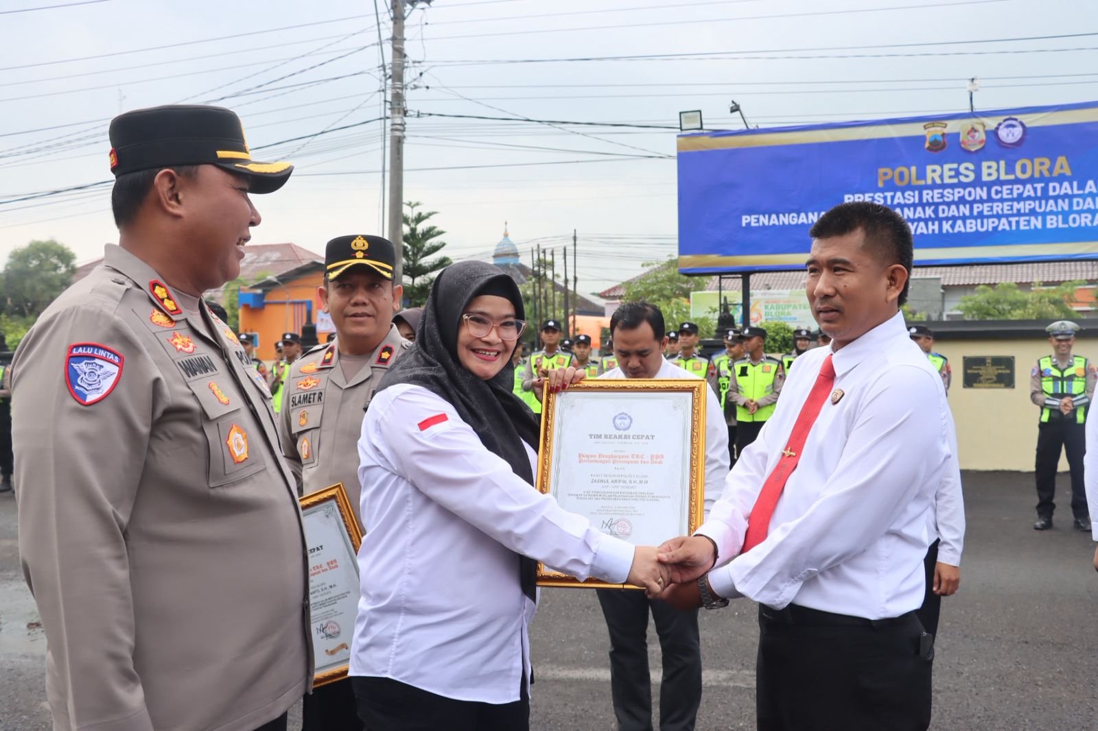 Penyerahan penghargaan tersebut dilaksanakan bertepatan dengan apel pagi yang digelar di halaman depan Mapolres Blora, Selasa (13/1/2026). Penghargaan diserahkan langsung oleh Koordinator Nasional TRCPPA, Jeny Claudia Lumowa, kepada Kapolres Blora AKBP Wawan Andi Susanto, S.H., S.I.K., M.H., Wakapolres Kompol Slamet Riyanto, S.H., M.H., Kasat Reskrim AKP Zaenul Arifin, S.H., M.H., serta jajaran Unit 4 PPA Satreskrim Polres Blora.